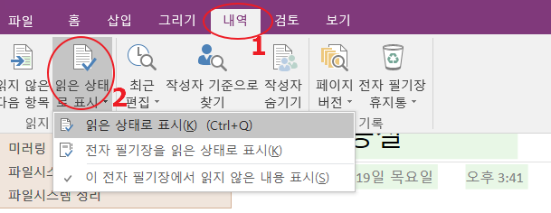 2. [읽은 상태로 표시] 메뉴를 선택하면 옵션이 나열됩니다.