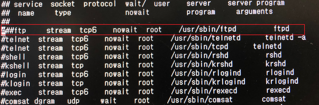 1. # vi /etc/inetd.conf