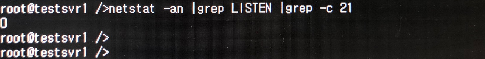 ftp 포트가 LISTEN 중인지 확인합니다. 21번으로 LISTEN 중인 포트가 나오지 않아야 정상 입니다.