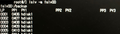 LV명이 fslv00인 /backup 파일시스템을 미러링 해보겠습니다.