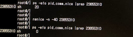 또한 renice 값을 40 이상을 입력하면 40으로 조정되어 설정되며