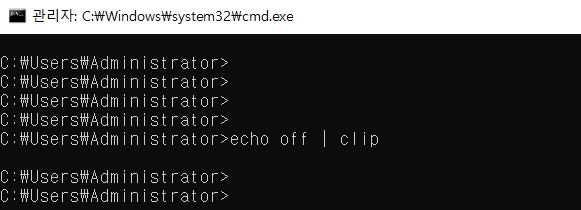 echo off | clip 명령어에서 off 대신 원하는 글자를 입력하면