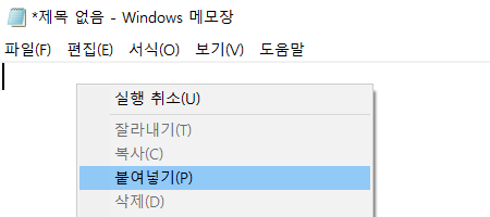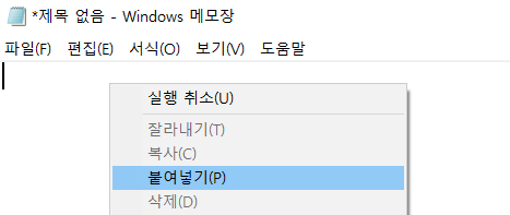 빈 메모장에 붙여넣기 하면