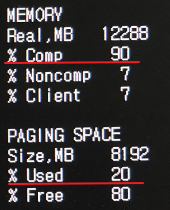 아래 화면은 comp 90%, PAGING SPACE의 Used가 20% 입니다.