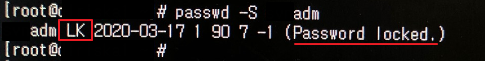 # passwd -S 계정명