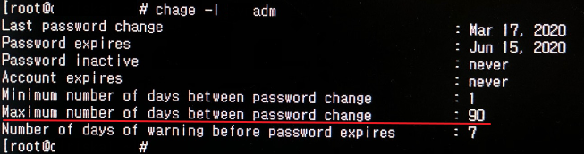 해당 계정의 비밀번호 변경일과 변경주기를 확인해 봅니다.