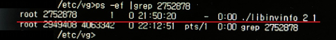 chvg 명령으로 해결되지 않는다면 관련 프로세스를 찾아 해결합니다.