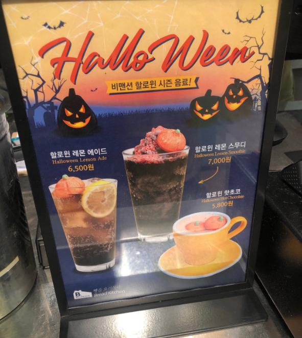 방문했을 때 할로윈 음료를 판매 중 이었습니다.