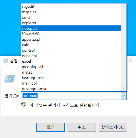 윈도우의 실행 창에 최근 실행했던 명령어나 실행 목록을