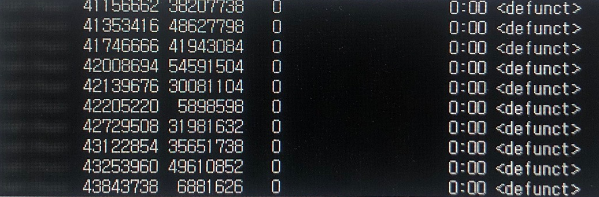 평소 발생하지 않던 과도한 defunct 프로세스 (좀비 프로세스) 가 발생할 수 있습니다.