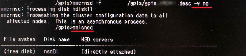 -v no 옵션은 해당 디스크에 NSD정보가 남아 있더라도
