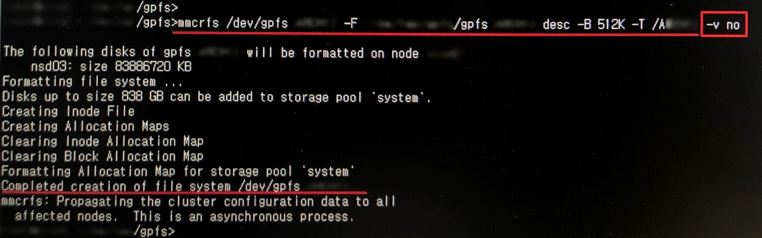 mmcrfs 명령으로 GPFS 파일시스템을 생성하려 하는데