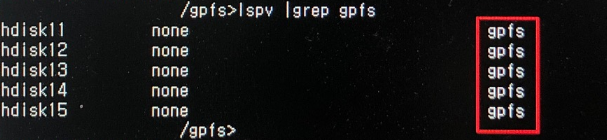 해당 디스크는 gpfs 라고 표시되어 있습니다.