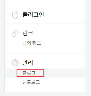 [관리] > 블로그 메뉴를 선택합니다.