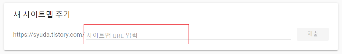 아래의 붉은 박스에 sitemap.xml 입력만 하면 완료됩니다.