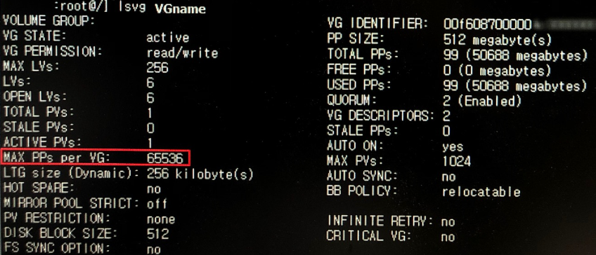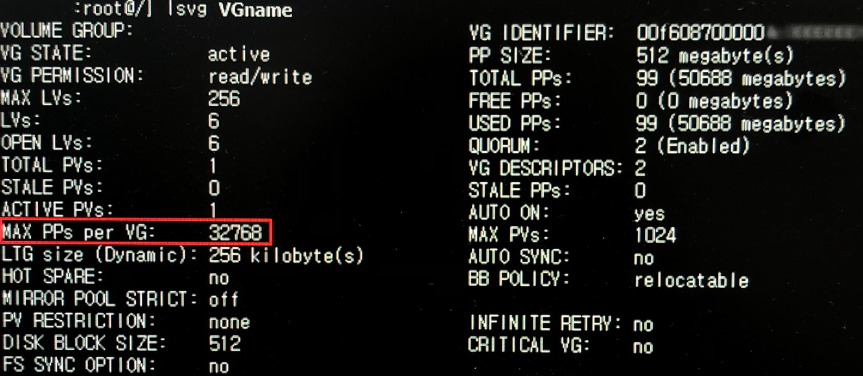 AIX에서 VG정보를 확인하면 MAX PPs per VG 라는 값이 있는데요,