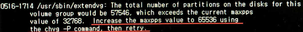 chpv 명령을 이용해 온라인으로 Max PP per VG 값을 증가시킬 수 있습니다.