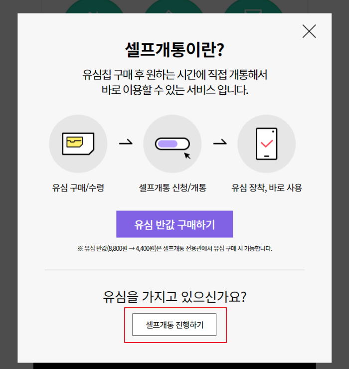 셀프개통 진행하기를 눌러 계속 진행합니다.