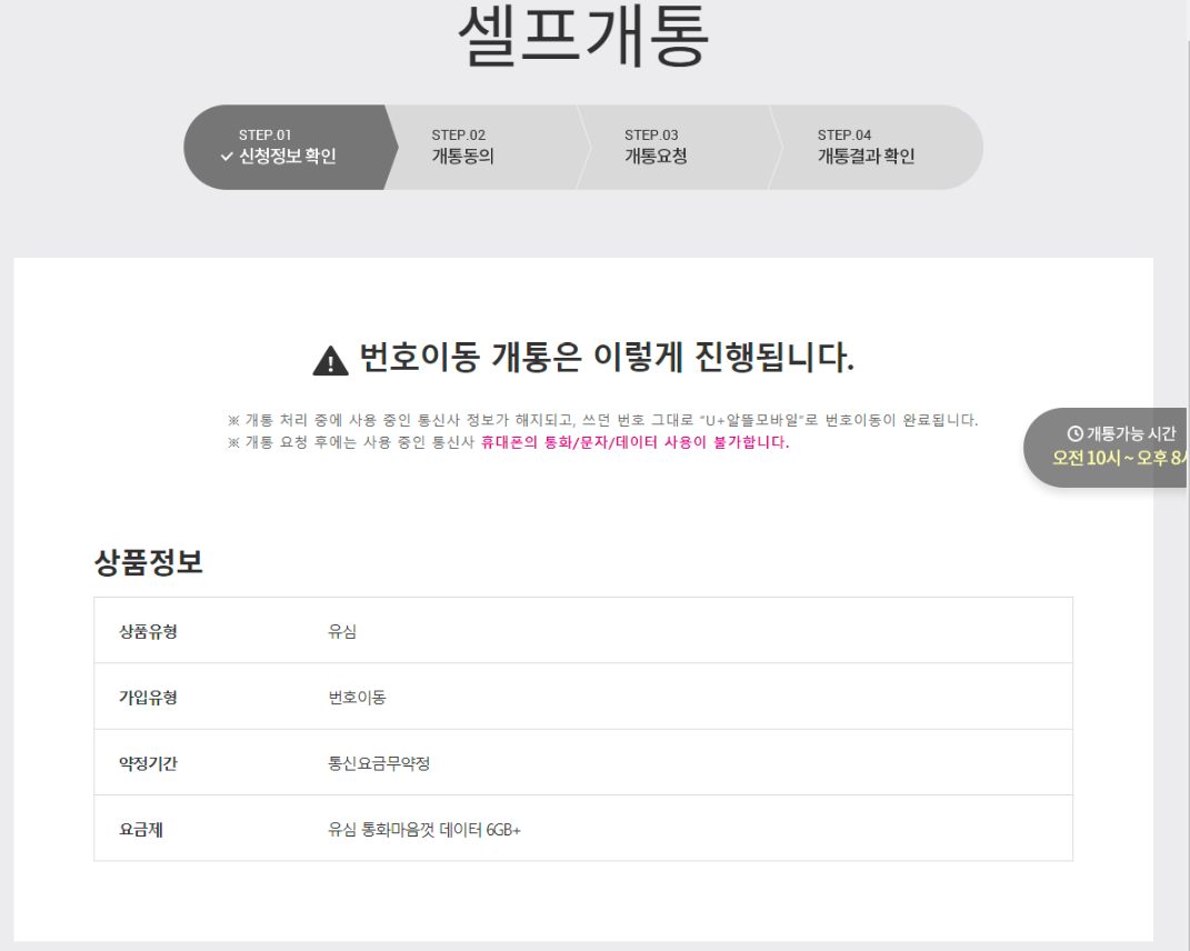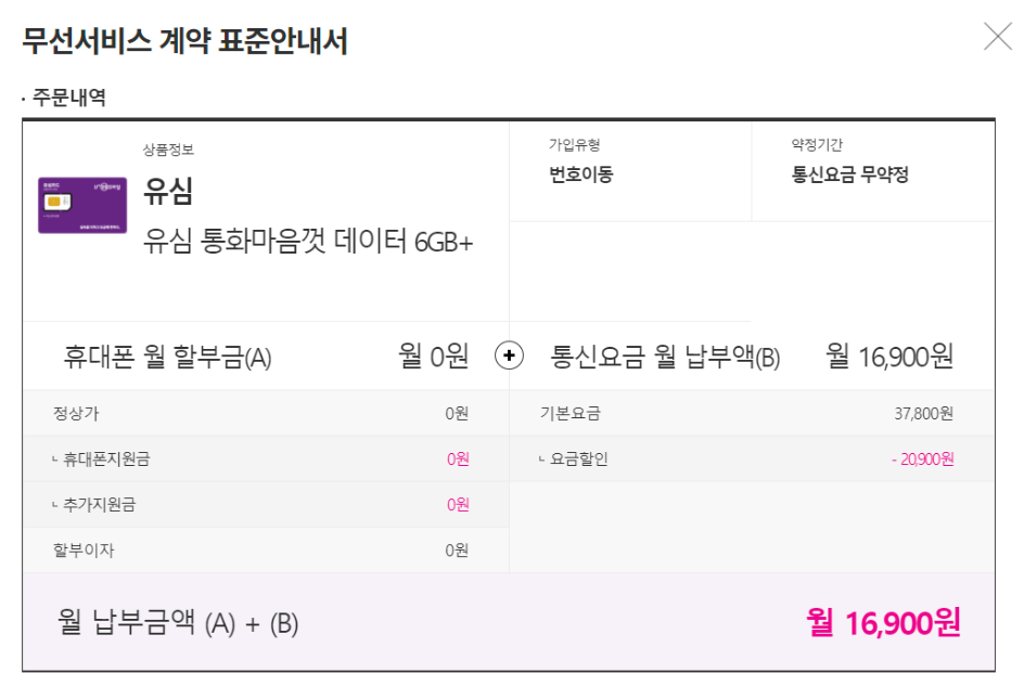 자신이 선택한 요금제가 맞는지 다시 한번 확인 후 진행합니다.