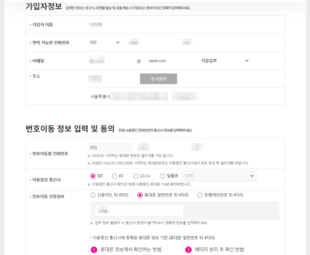 PC 등 에서 개통을 진행하는 것을 추천합니다.