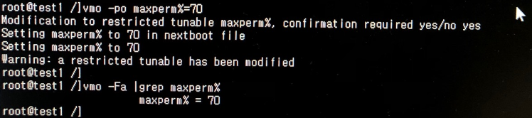 maxperm% 를 조회하려면 vmo -Fa 명령을 이용합니다.