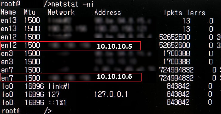 아래는 동일한 subnet 대역의 IP가 각기 다른 인터페이스에 설정되어 있는 경우 입니다.