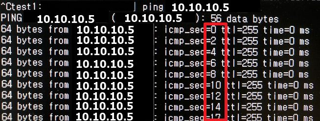 정상적이라면 icmp seq가 0, 1, 2, 3 ... 이렇게 숫자가 하나씩 증가를 해야하지만