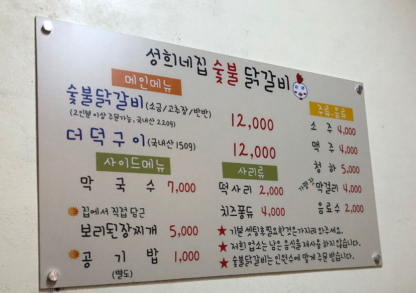 개인적으로 철판닭갈비보다 숯불닭갈비가 더 좋습니다. ㅋㅋ