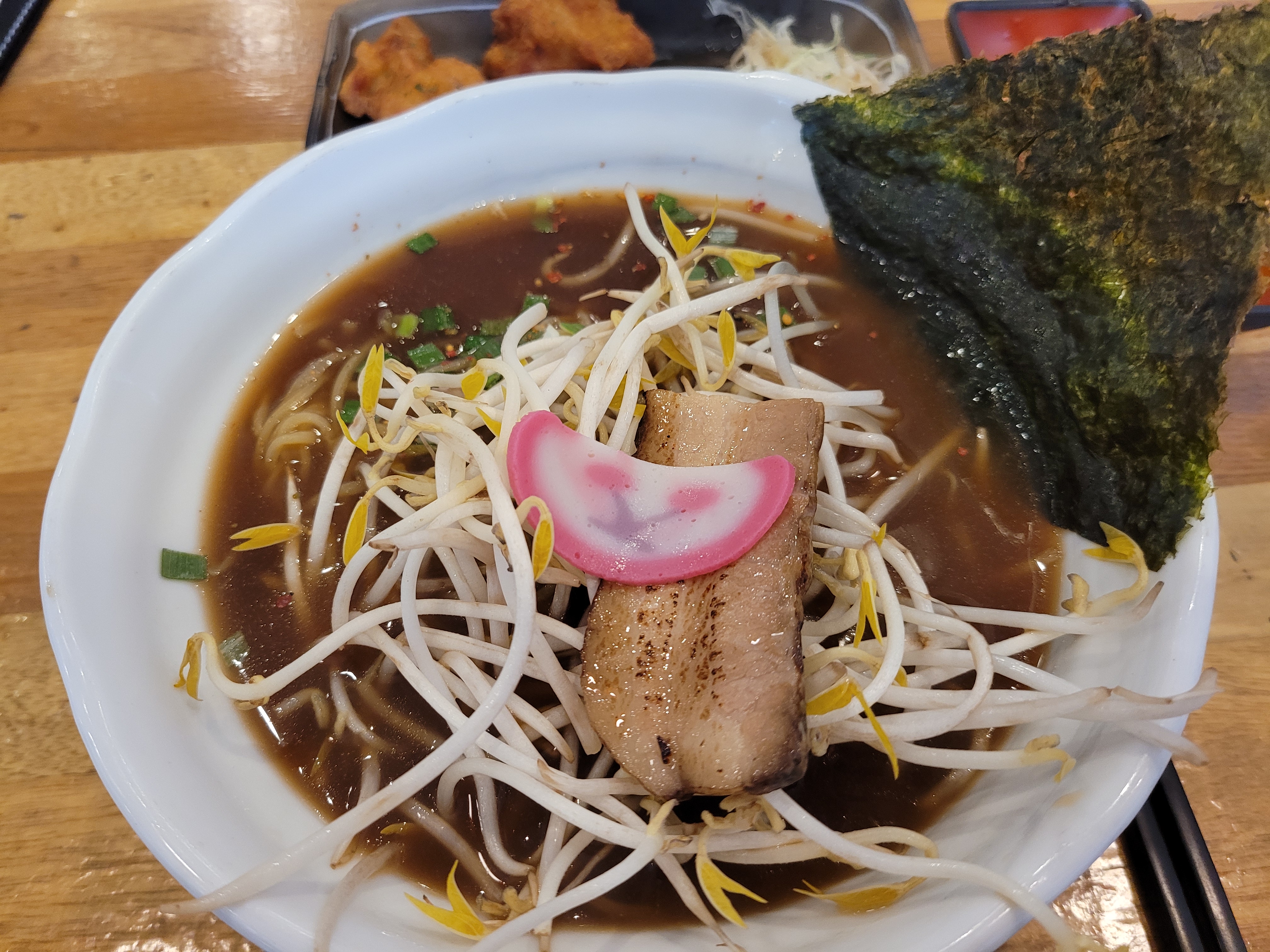 소유라멘에 달걀 추가, 가라아케를 주문했습니다.