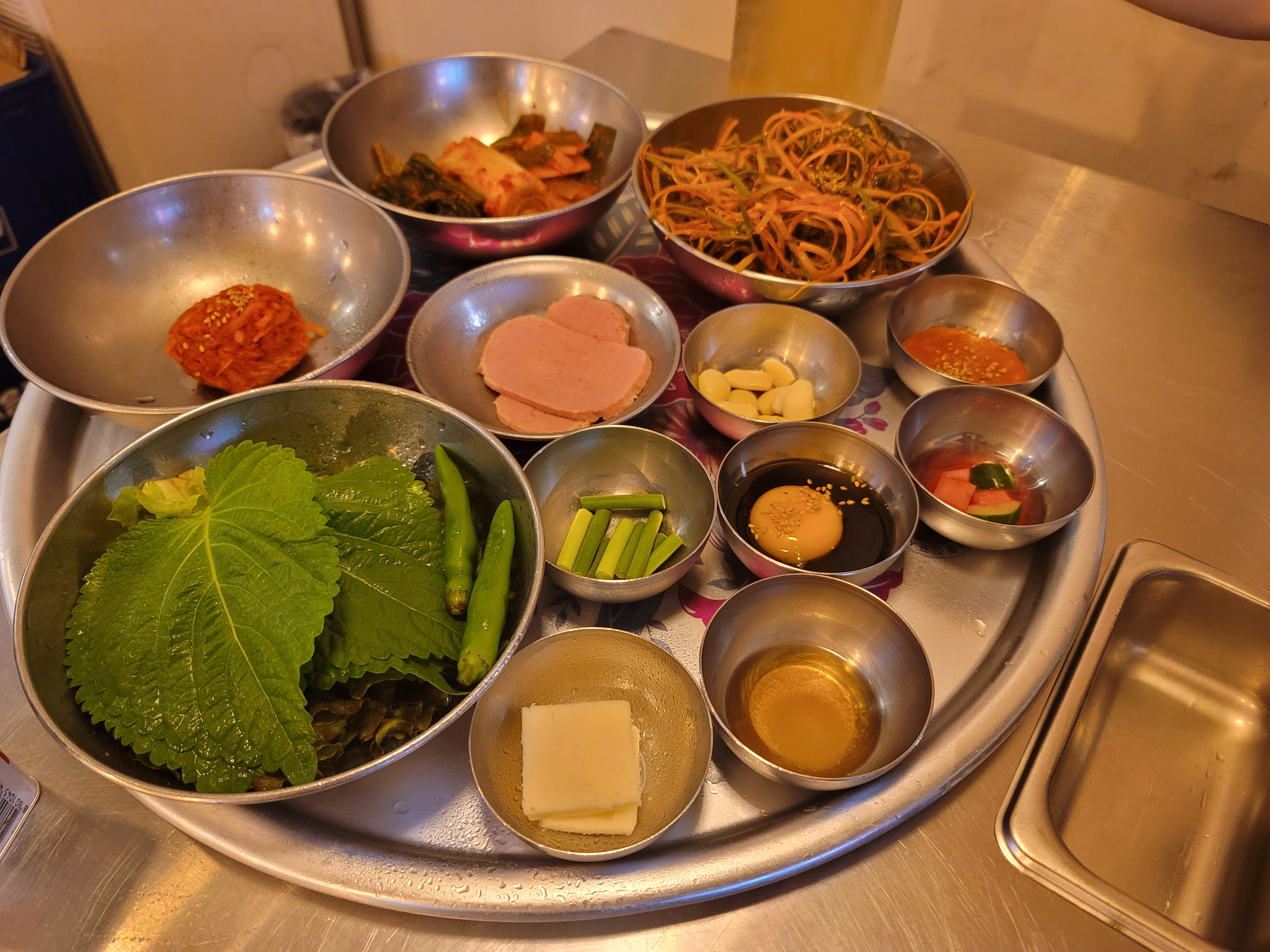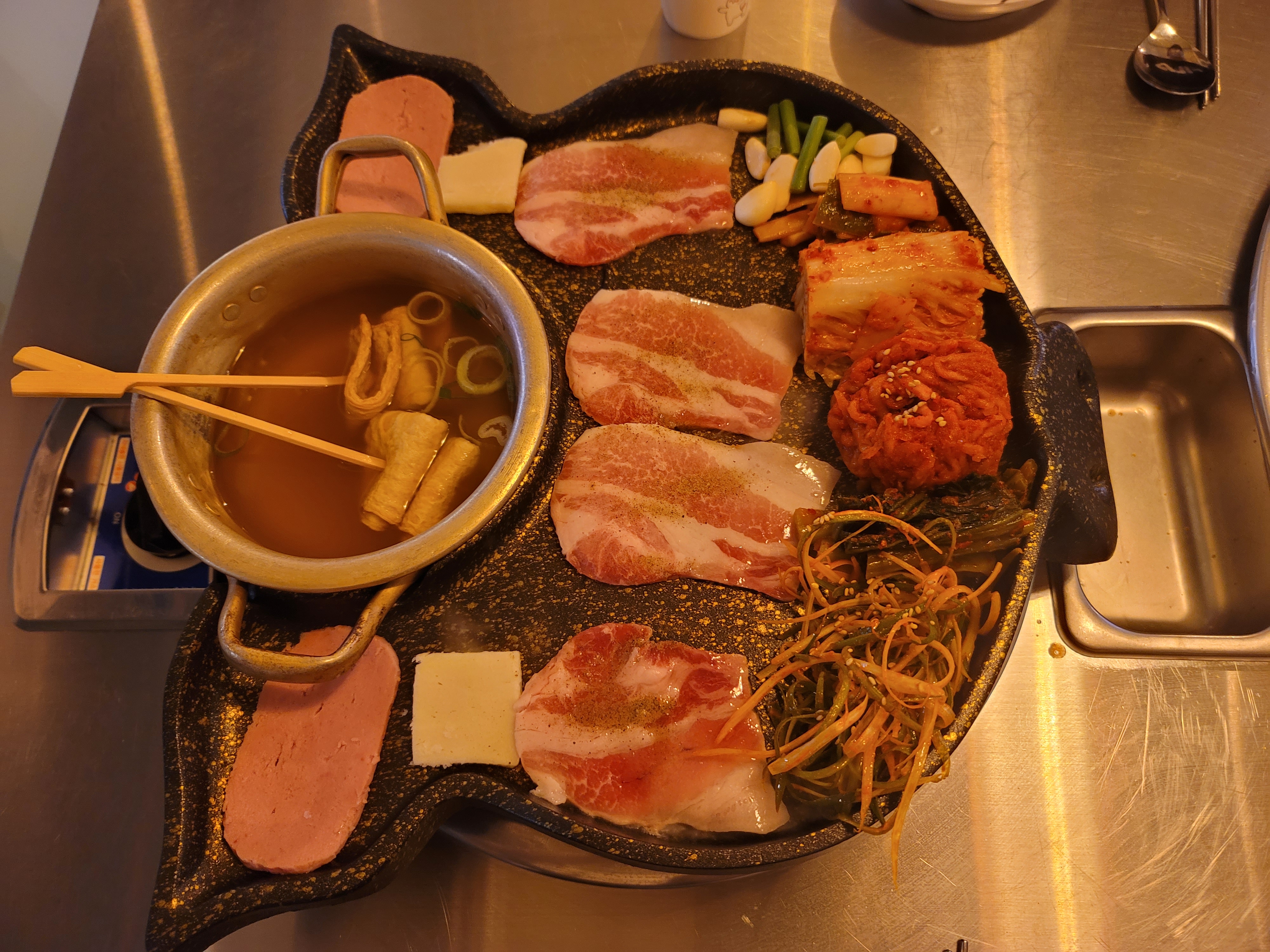 돼지 불판에 셋팅을 쫙~ 해주셨어요😳