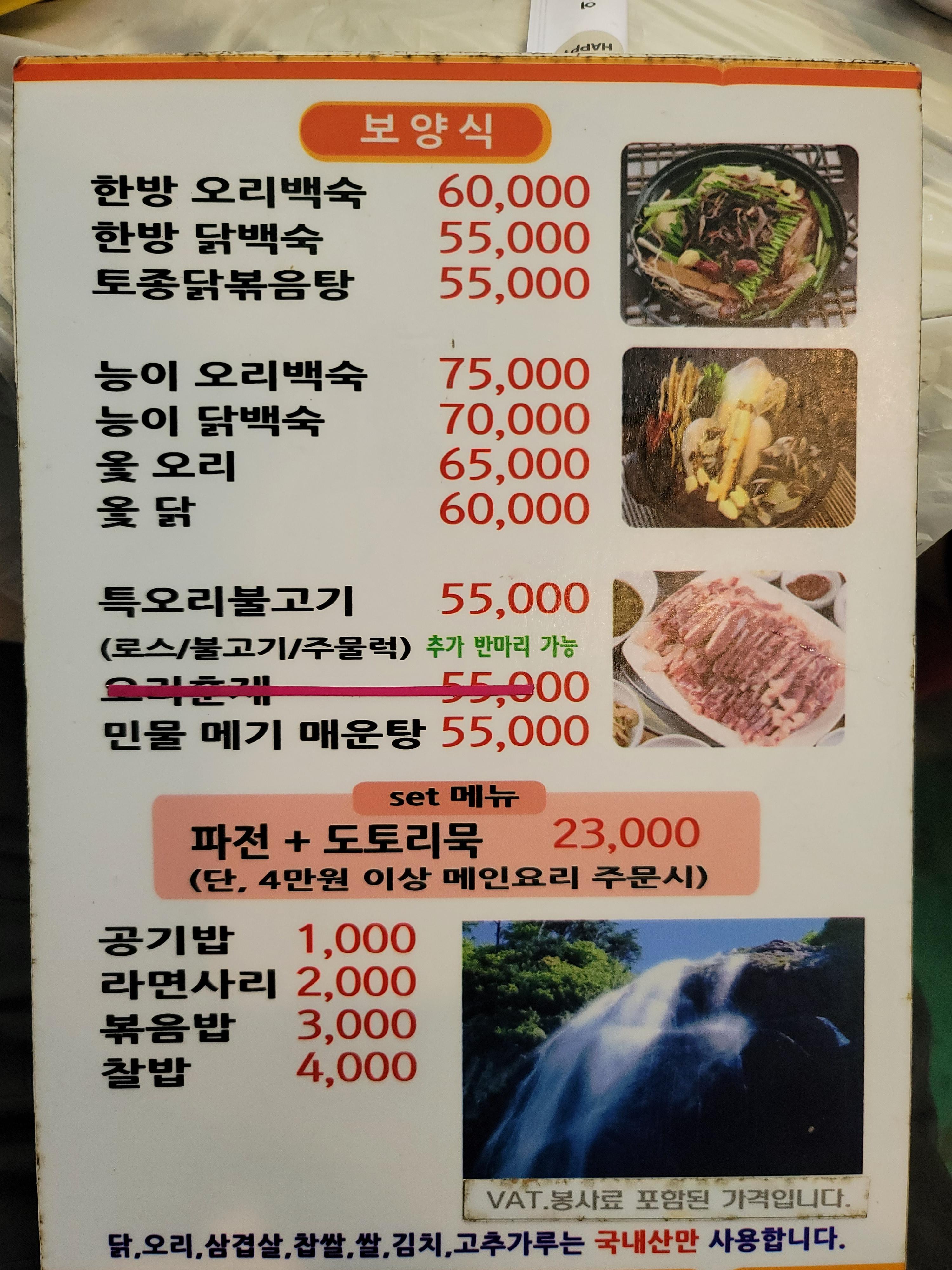 계곡 근처 이다 보니 백숙이 인기 메뉴인거 같아요.