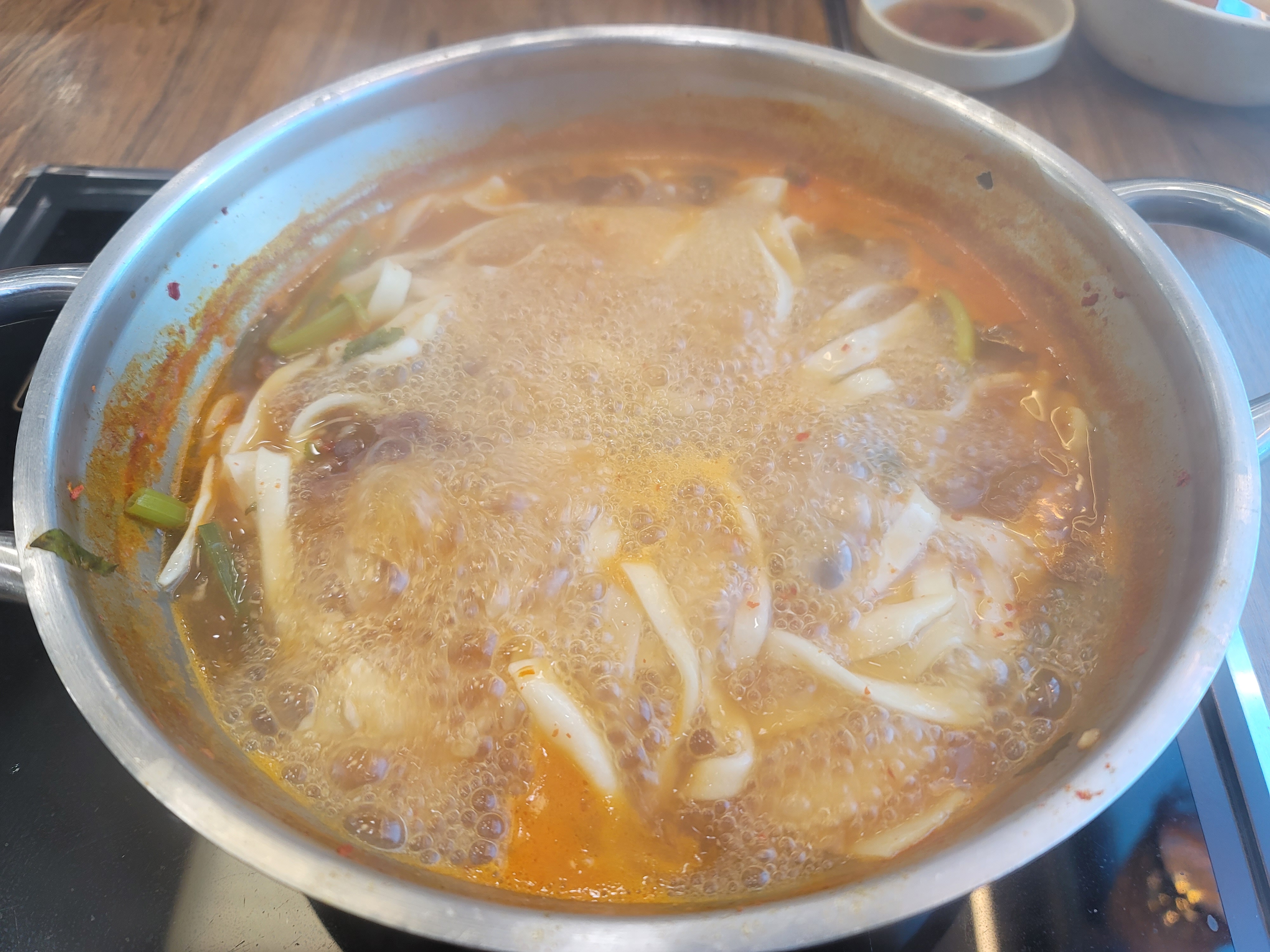 함께 나온 칼국수랑 칼제비를 넣고 다시 팔팔 끓여서