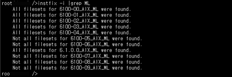 AIX6.1 TL09 까지 설치된 것을 확인할 수 있다.