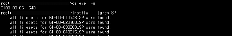 AIX6.1 TL04 SP09 버전이라는 것이 확인이 된다.