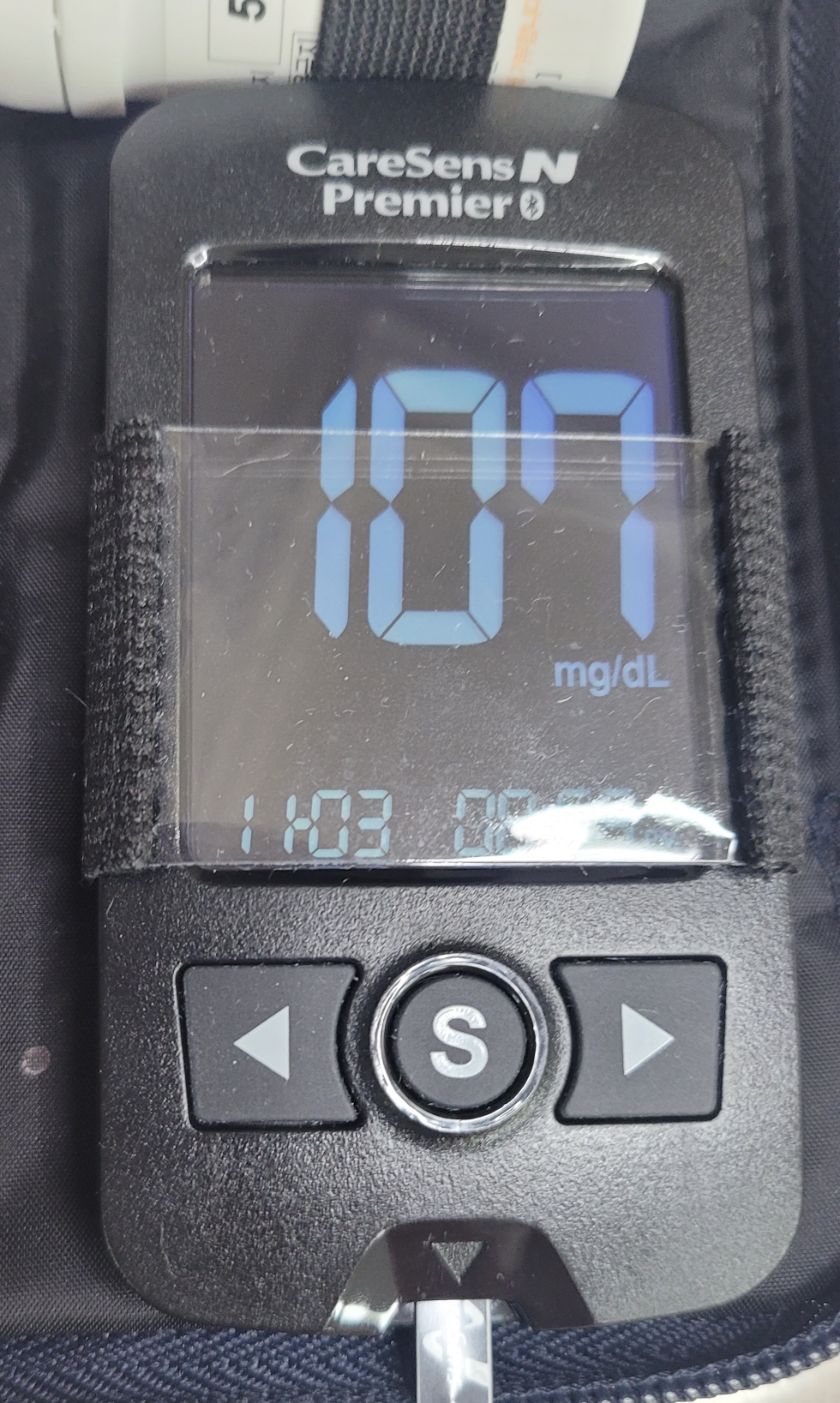 처음 먹는 아이스크림이라 30분 후 혈당도 체크했는데