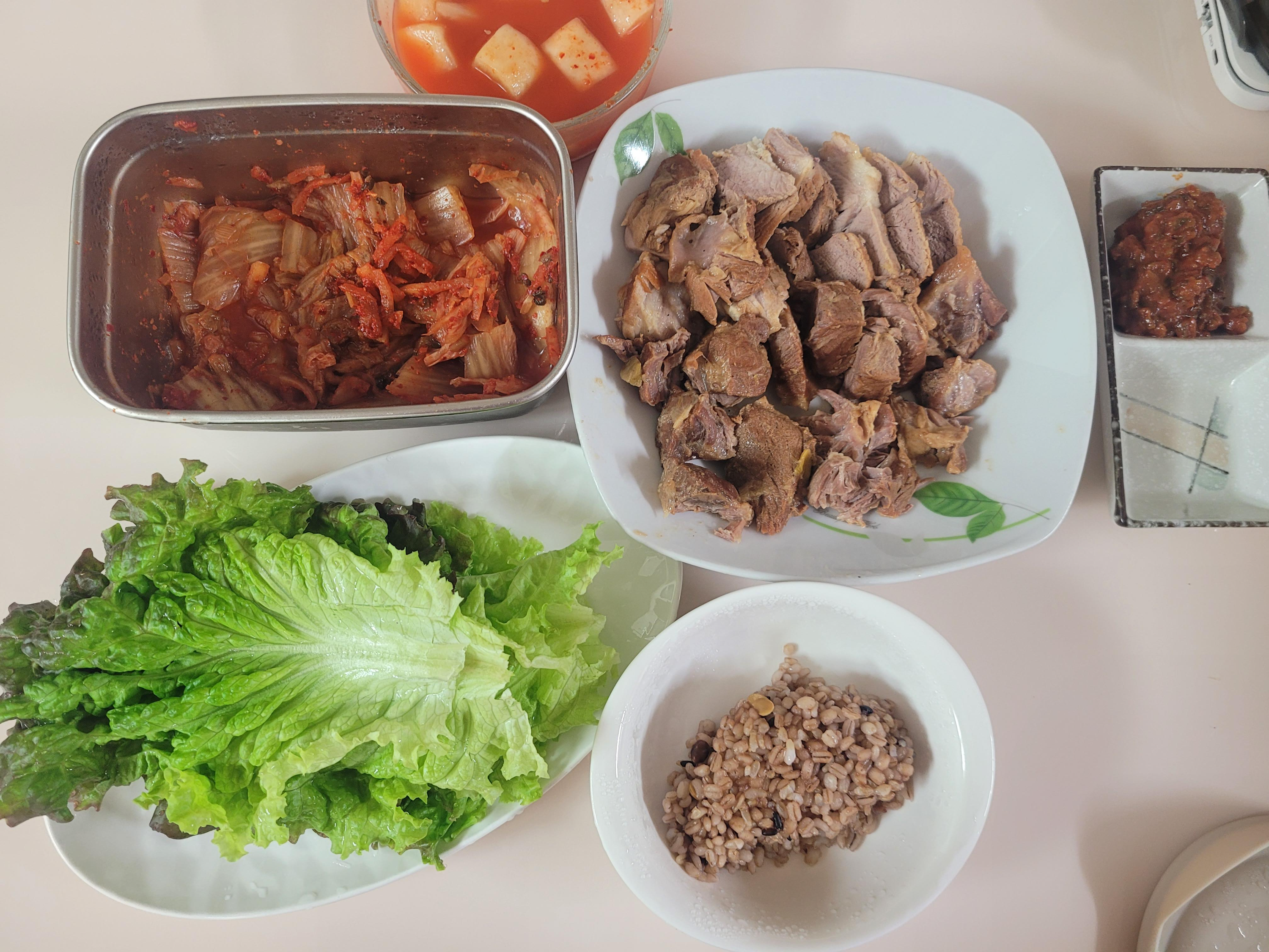 수육, 상추, 쌈장
