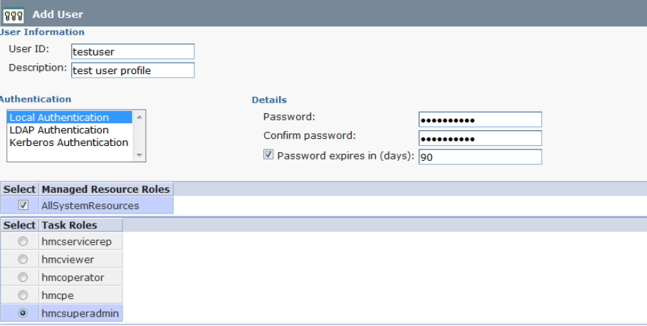 taskrole=hmcsuperadmin : hmcsuperadmin 으로 계정권한 할당