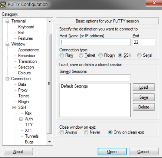 Host Name(or IP address) 란에 서버의 IP를 입력합니다.