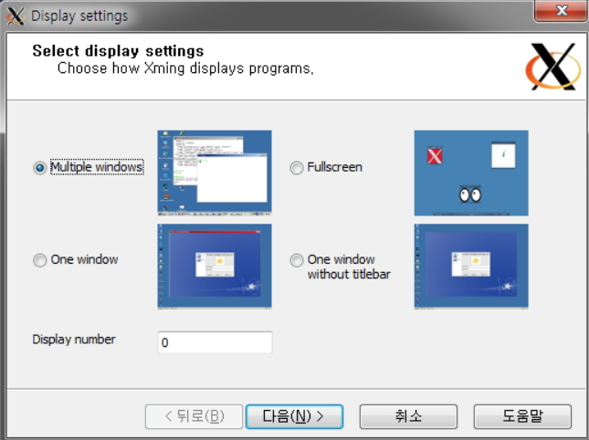 2. 아래 화면과 같이 설정 후 종료하면 xming이 실행됩니다.